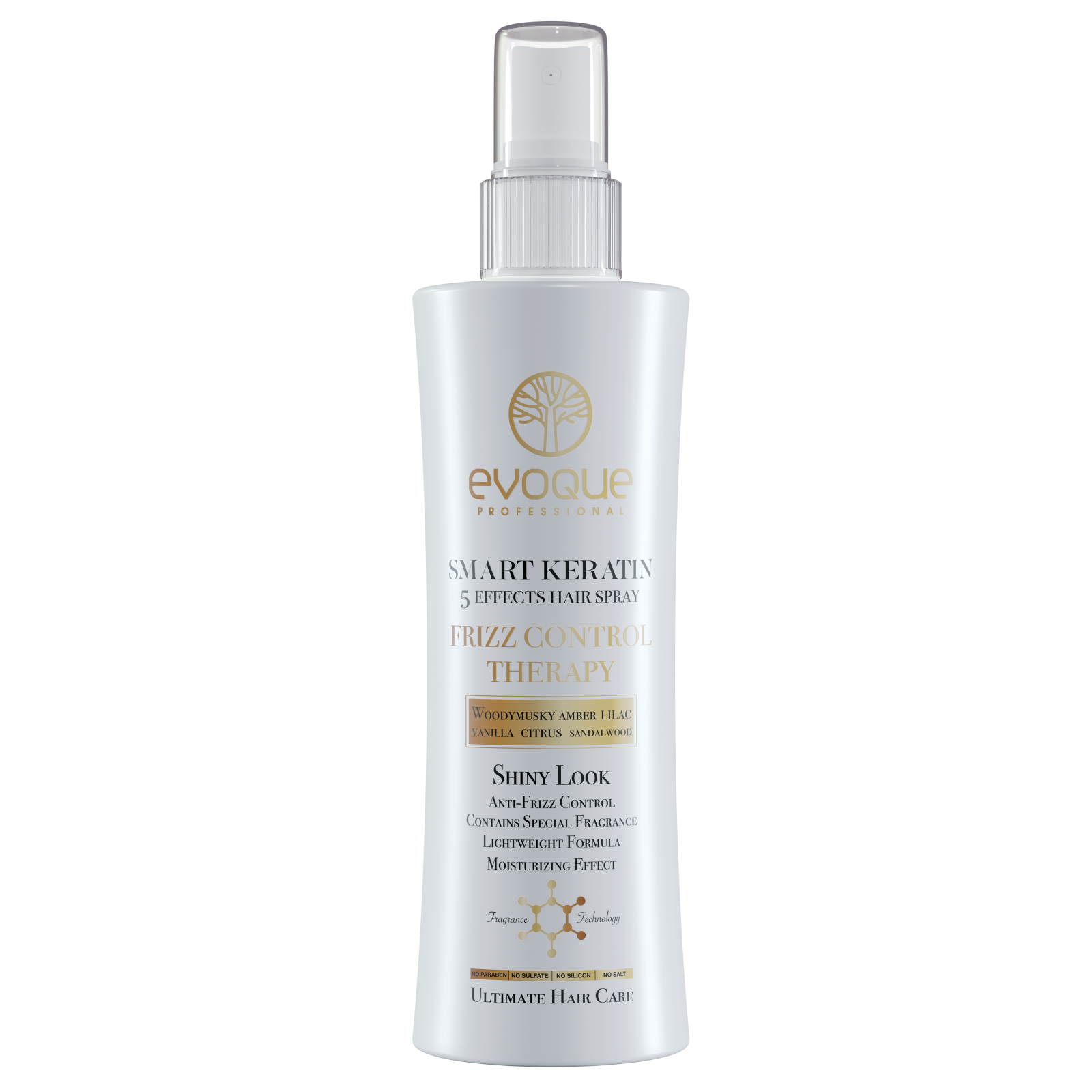 Smart Keratin Frizz Control Spray este un balsam leave-in multifuncțional cu 5 efecte vizibile, care oferă hidratare, disciplinare și protecție pentru părul uscat, rebel sau deteriorat. Formula sa lejeră, cu keratină inteligentă, ulei de argan, ulei de macadamia și agenți anti-statici, lasă părul neted, parfumat și strălucitor, fără senzația de încărcare.